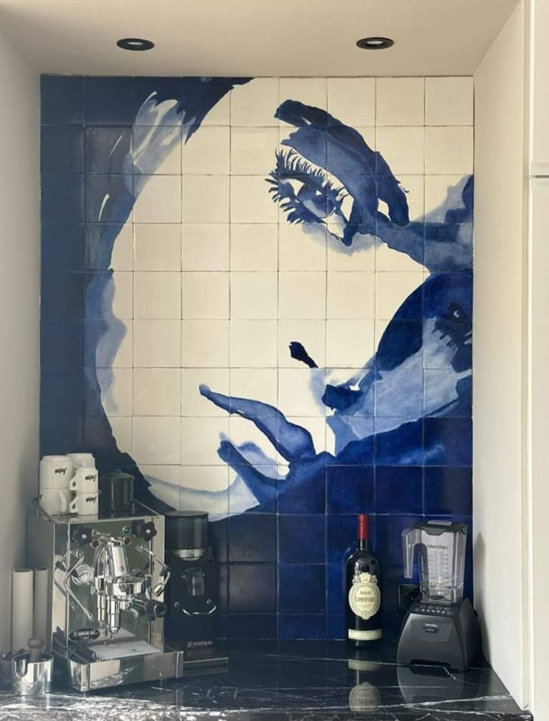 Delfts Blauw ontmoet moderne elegantie in deze unieke keuken. Het opvallende tegeltableau brengt traditionele techniek naar een hedendaags interieur. Prachtig groot tegeltableau.